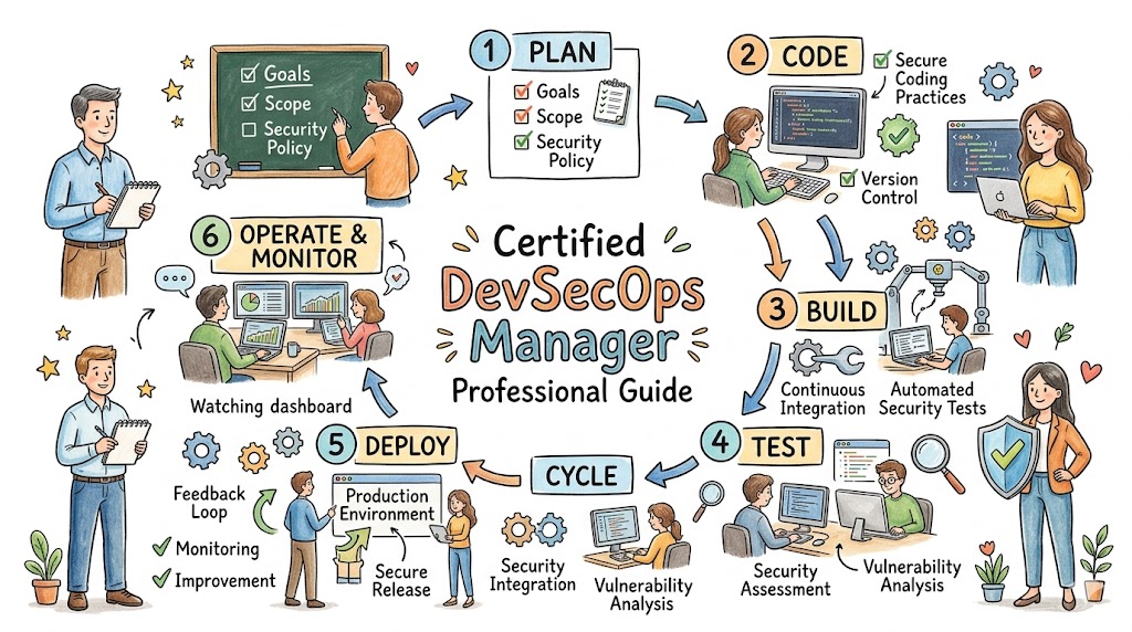 Certified DevSecOps Manager is for people who want to lead security, not just talk about it. In modern companies, code ships fast, systems run in the cloud, and attackers move even faster. Traditional security gates and manual reviews can no longer keep up with agile teams and continuous delivery.This is where a DevSecOps Manager becomes critical. Instead of putting security at the end, you design a way of working where security is built into every stage of planning, coding, testing, deployment, and operations. You connect developers, operations, SRE, security, and business leaders so that everyone shares responsibility for protecting systems and data.In this guide, you will understand what the Certified DevSecOps Manager certification covers, who should take it, and how it can shape your career as a technical leader. You will see how it fits into DevOps, SRE, AIOps/MLOps, DataOps, and FinOps paths, and how to plan your preparation in a practical way. By the end, you will be able to decide if this is the right next step to move from “individual contributor” to “security‑aware manager” in your organization.