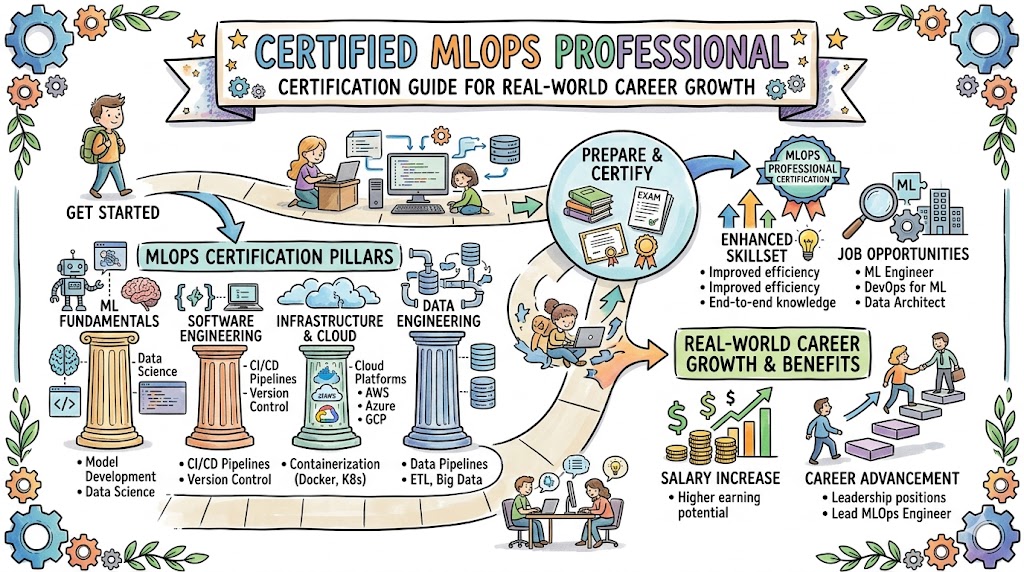 The Certified MLOps Professional certification provides a practical pathway for engineers aiming to specialize in machine learning operations. It combines the strengths of DevOps, data engineering, and machine learning to create scalable and reliable systems. In modern enterprises, the ability to manage the entire ML lifecycle is becoming a critical requirement. This guide helps you understand why MLOps is important and how this certification prepares you for real-world challenges. It also supports you in making informed decisions about certification, skill development, and long-term career direction.