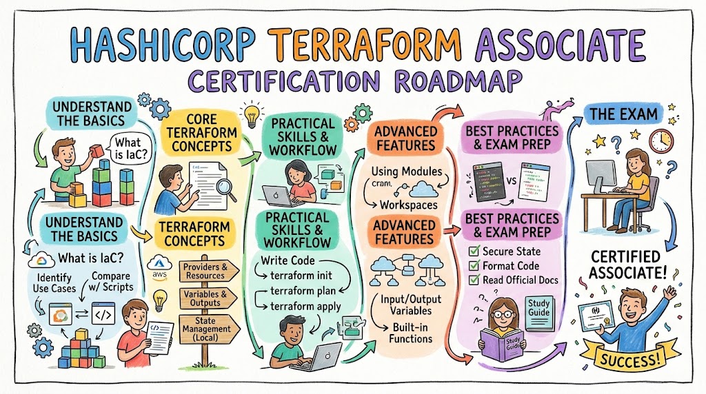 Hashicorp Certified Terraform Associate is a foundational certification for people who want to prove they understand the basic concepts and practical skills of Terraform. It focuses on Infrastructure as Code, Terraform workflows, provider-based resource management, and the core thinking required to manage infrastructure through code instead of through manual actions. DevOpsSchool explicitly describes it as a foundational certification for professionals familiar with basic Terraform concepts and skills.